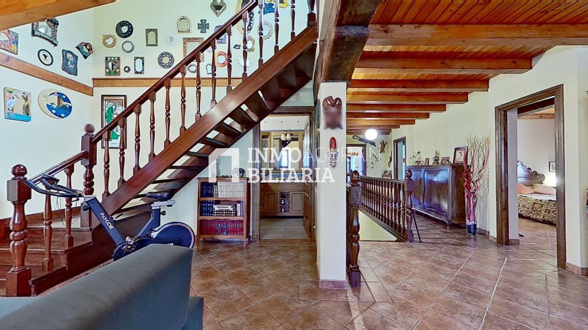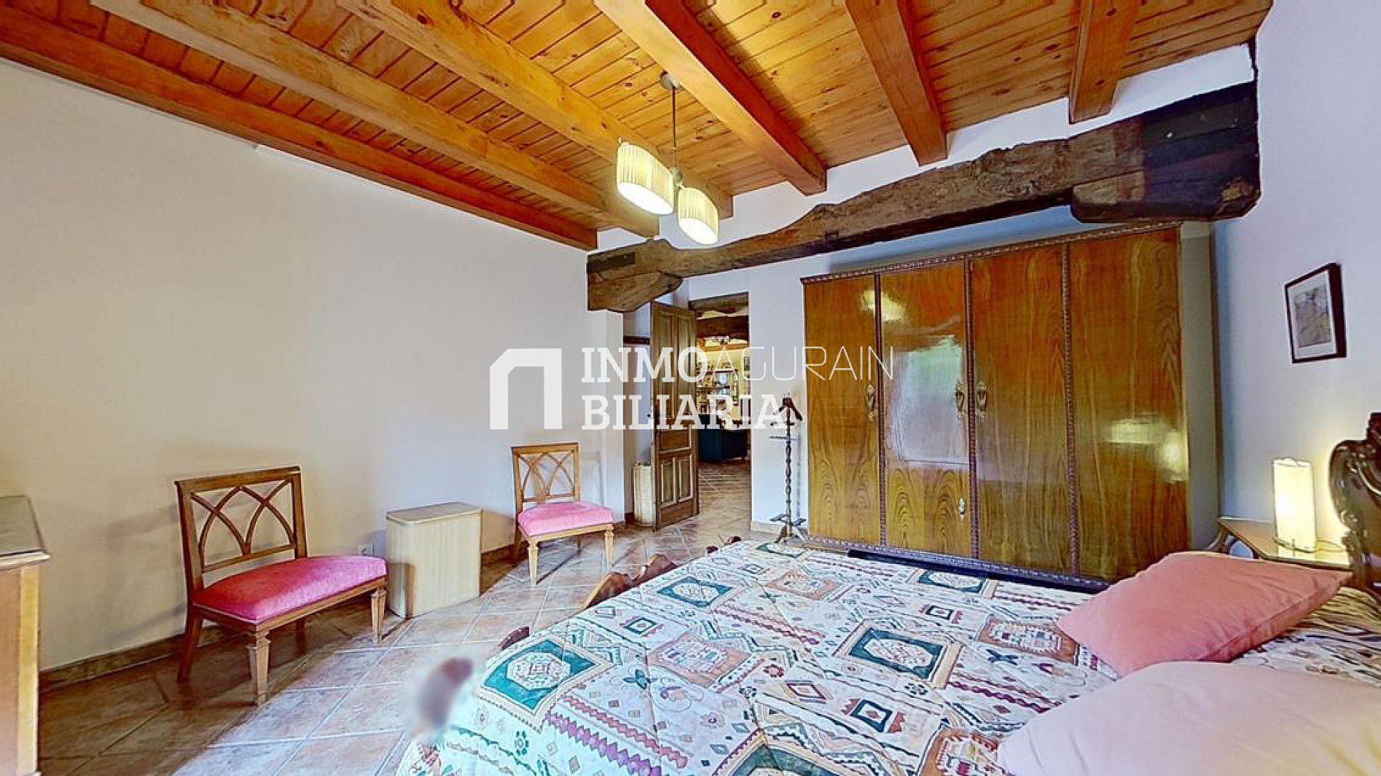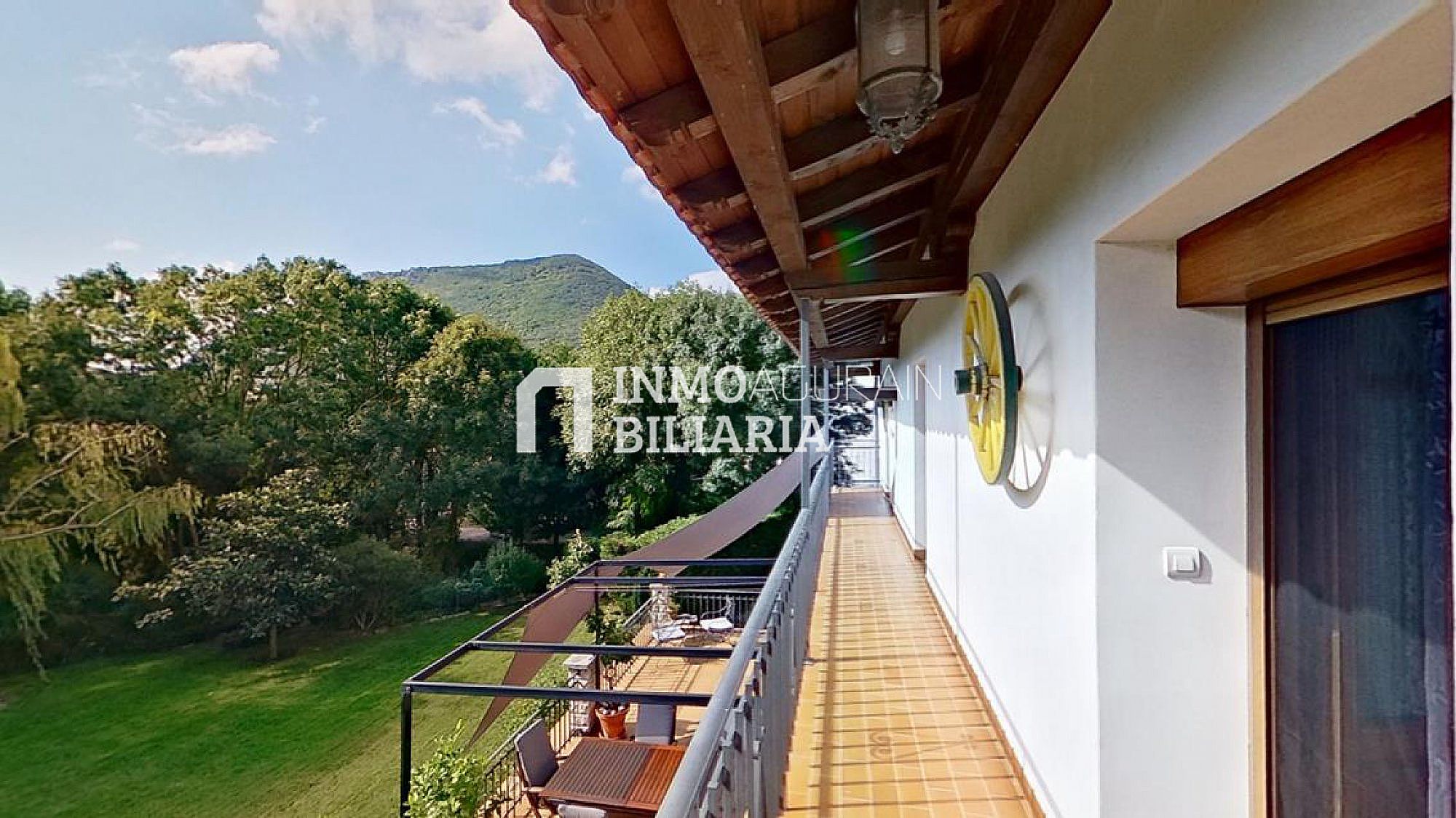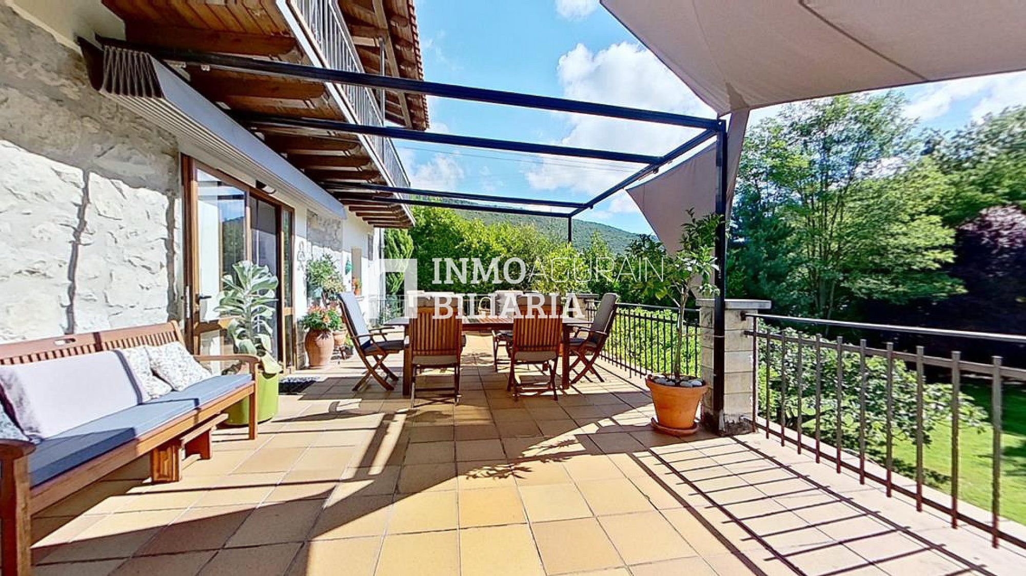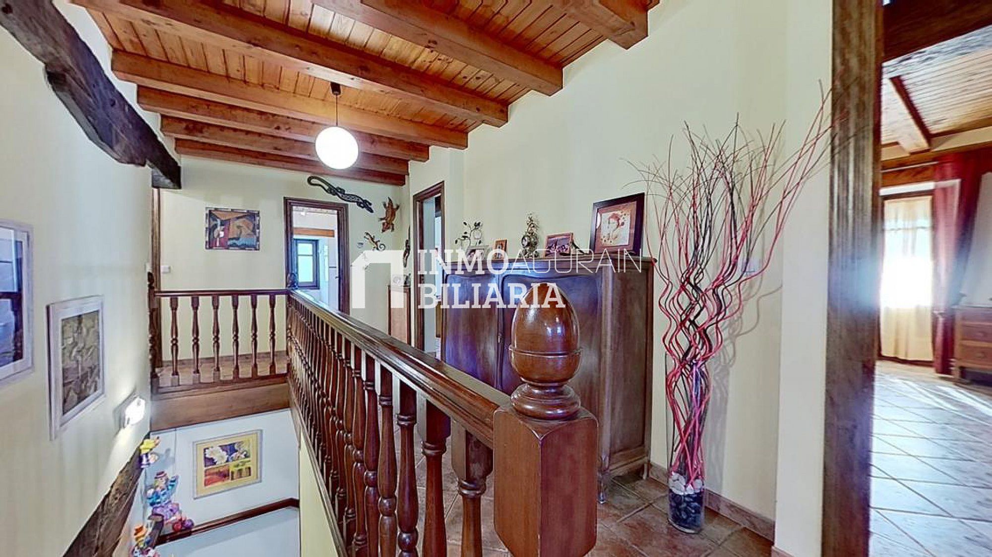 Esta hermosa casa llama la atención por su ubicación muy cercana a Pamplona, junto a la autopista, pero dentro de un bosque verde y fresco de Navarra. Es una auténtica casa de la zona, donde se ha preservado su exterior con una impetuosa fachada y conservado la esencia del interior: suelos y vigas de madera y fuego bajo, pero dándole a su vez a la propiedad las ventajas de un muy buen aislamiento de ventanas y una muy eficiente calefacción. Con una gran terraza al terreno y a la arboleda, con varios balcones, se ha buscado la luz y la claridad lo que le dá una elegancia única y exclusiva.