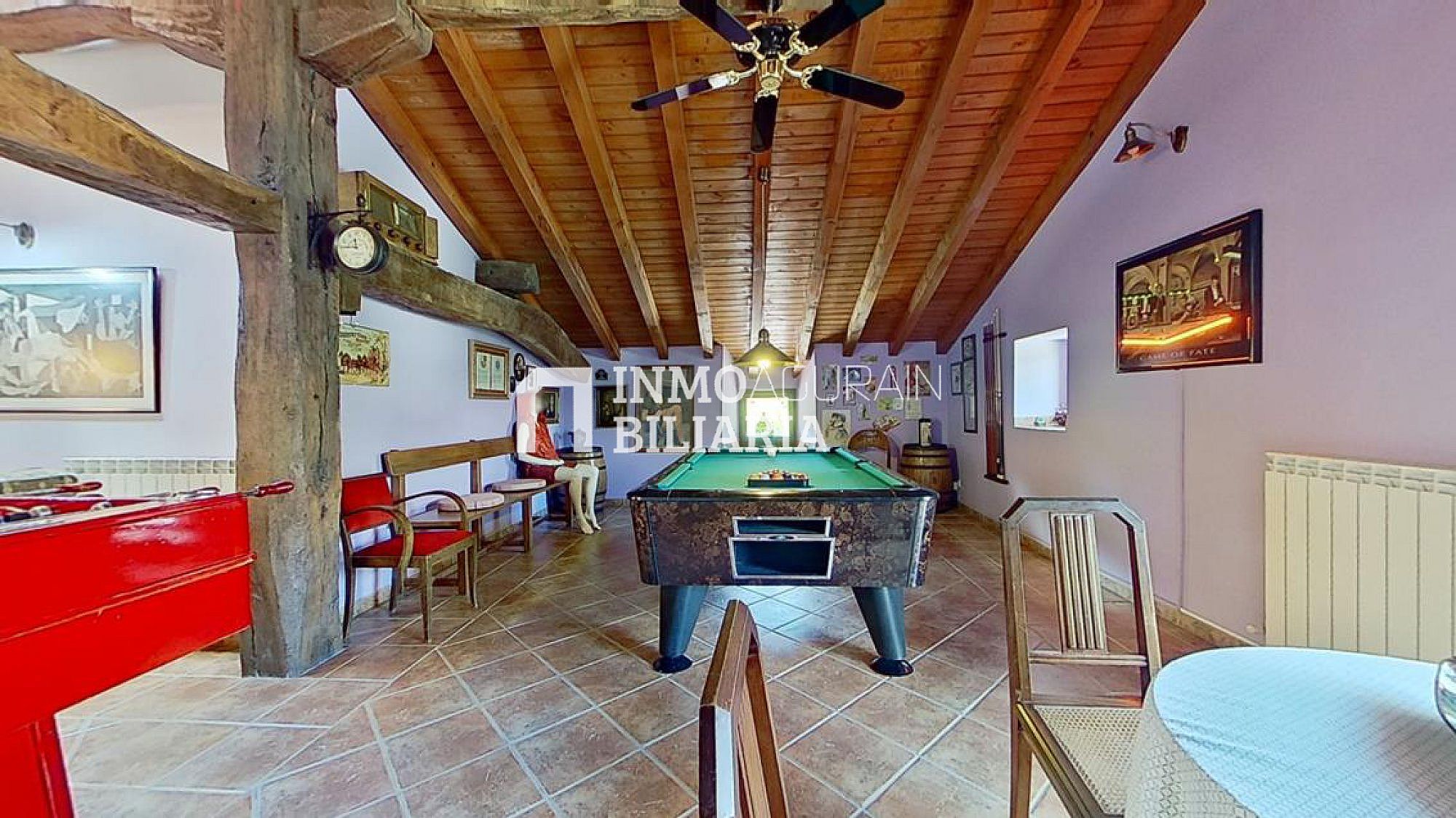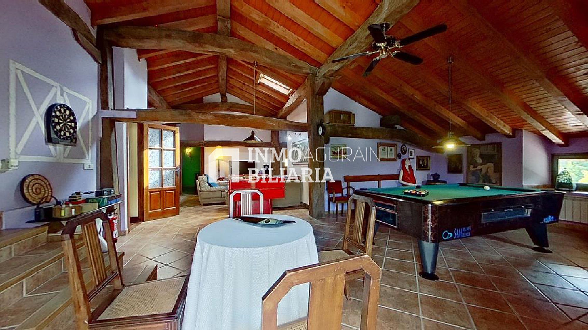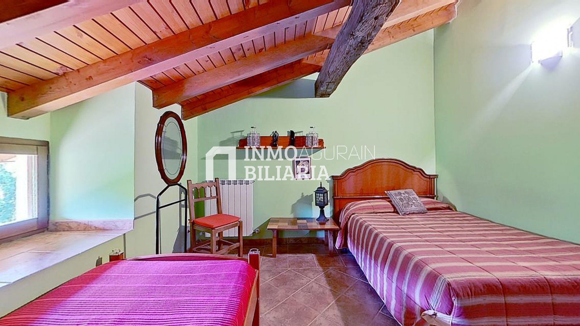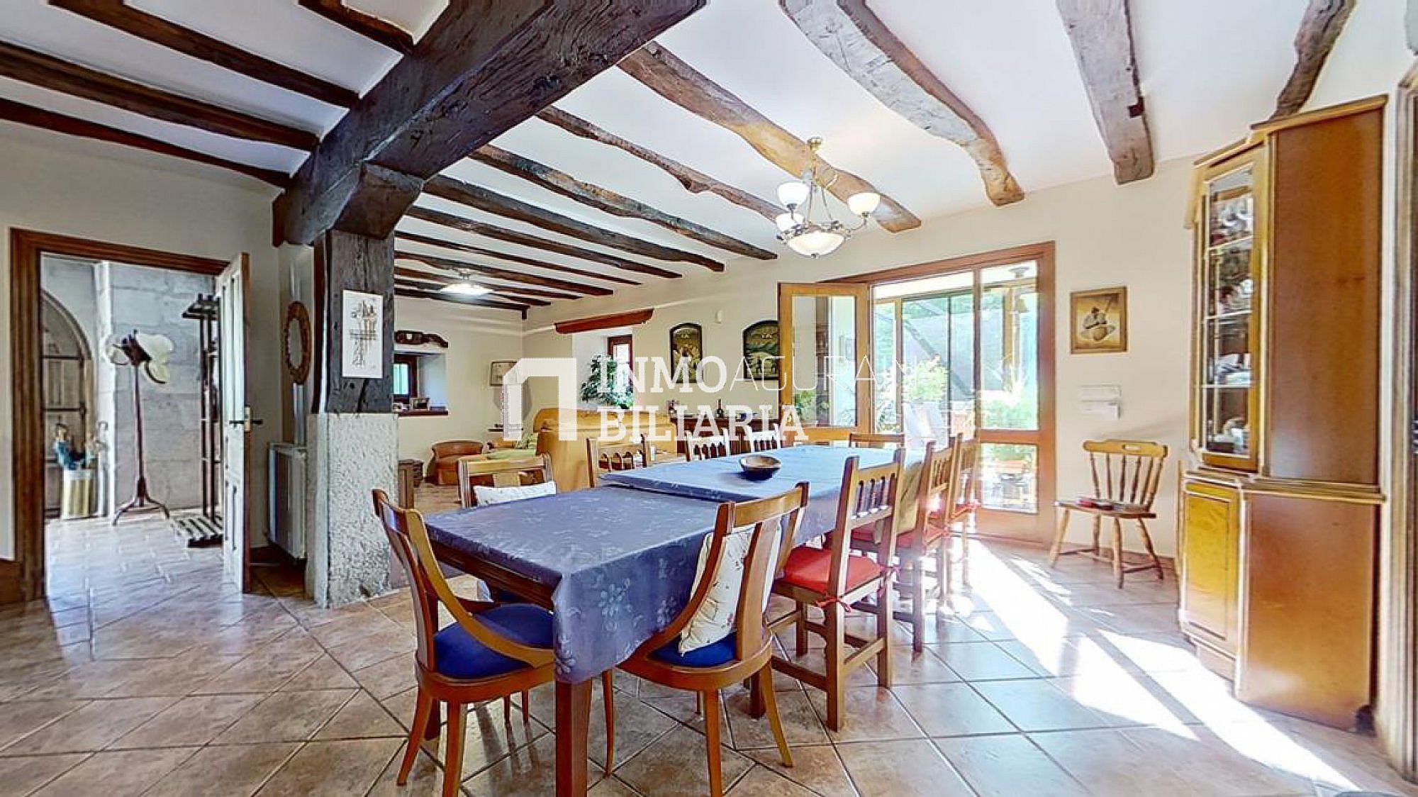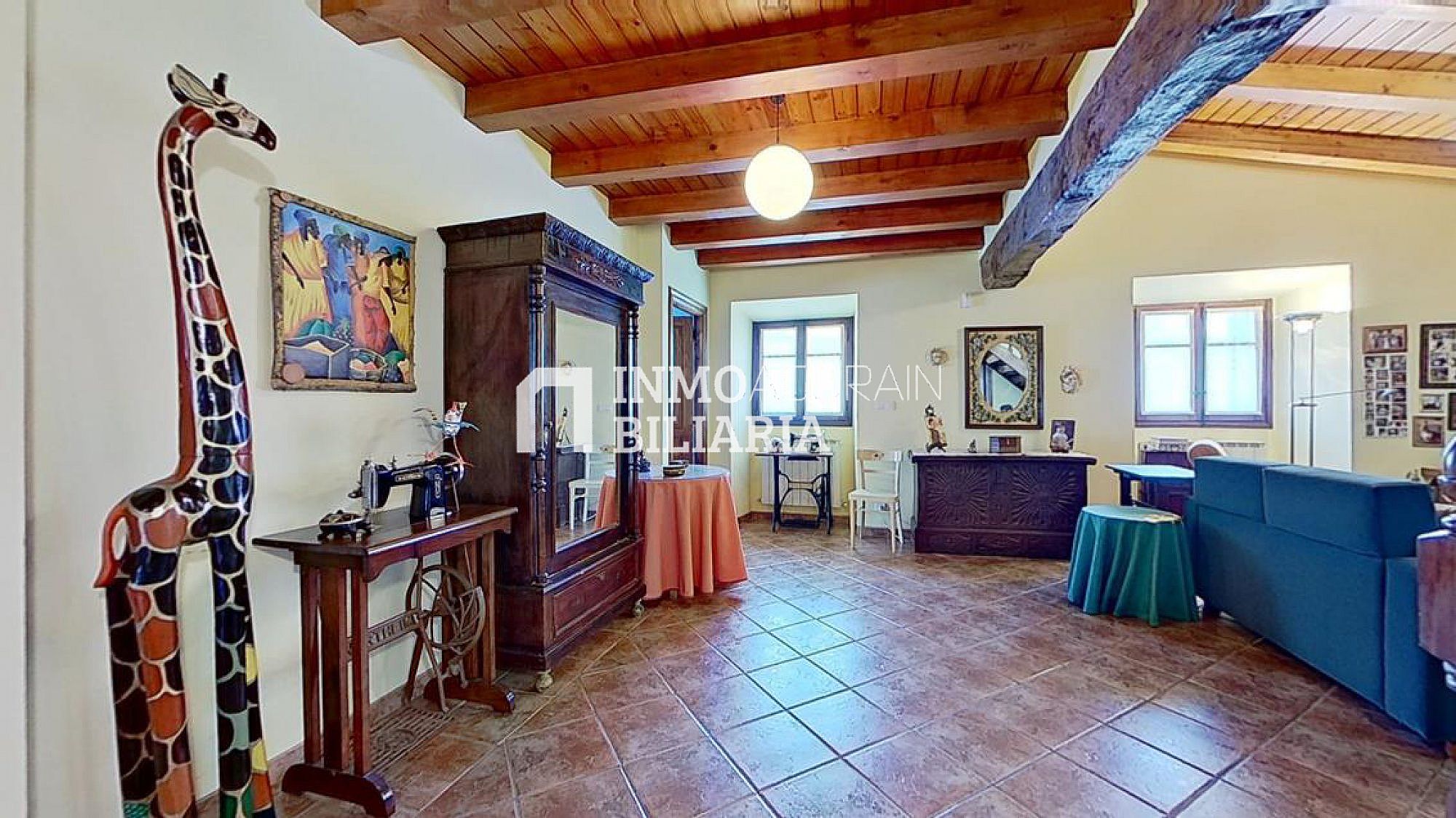 Esta hermosa casa llama la atención por su ubicación muy cercana a Pamplona, junto a la autopista, pero dentro de un bosque verde y fresco de Navarra. Es una auténtica casa de la zona, donde se ha preservado su exterior con una impetuosa fachada y conservado la esencia del interior: suelos y vigas de madera y fuego bajo, pero dándole a su vez a la propiedad las ventajas de un muy buen aislamiento de ventanas y una muy eficiente calefacción. Con una gran terraza al terreno y a la arboleda, con varios balcones, se ha buscado la luz y la claridad lo que le dá una elegancia única y exclusiva.