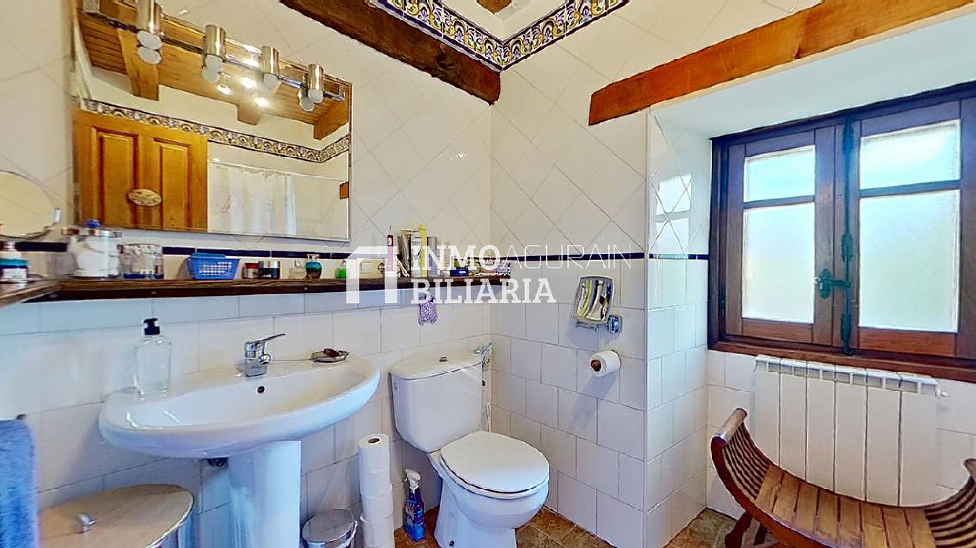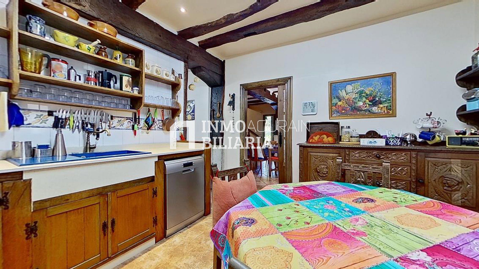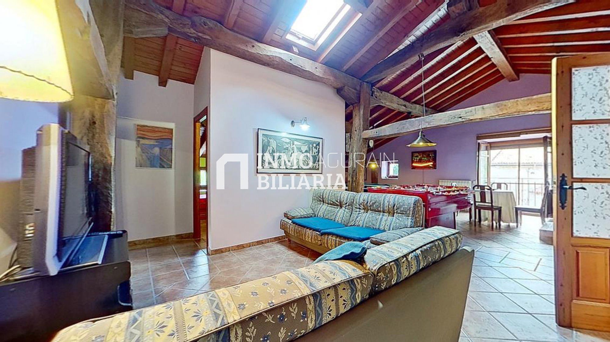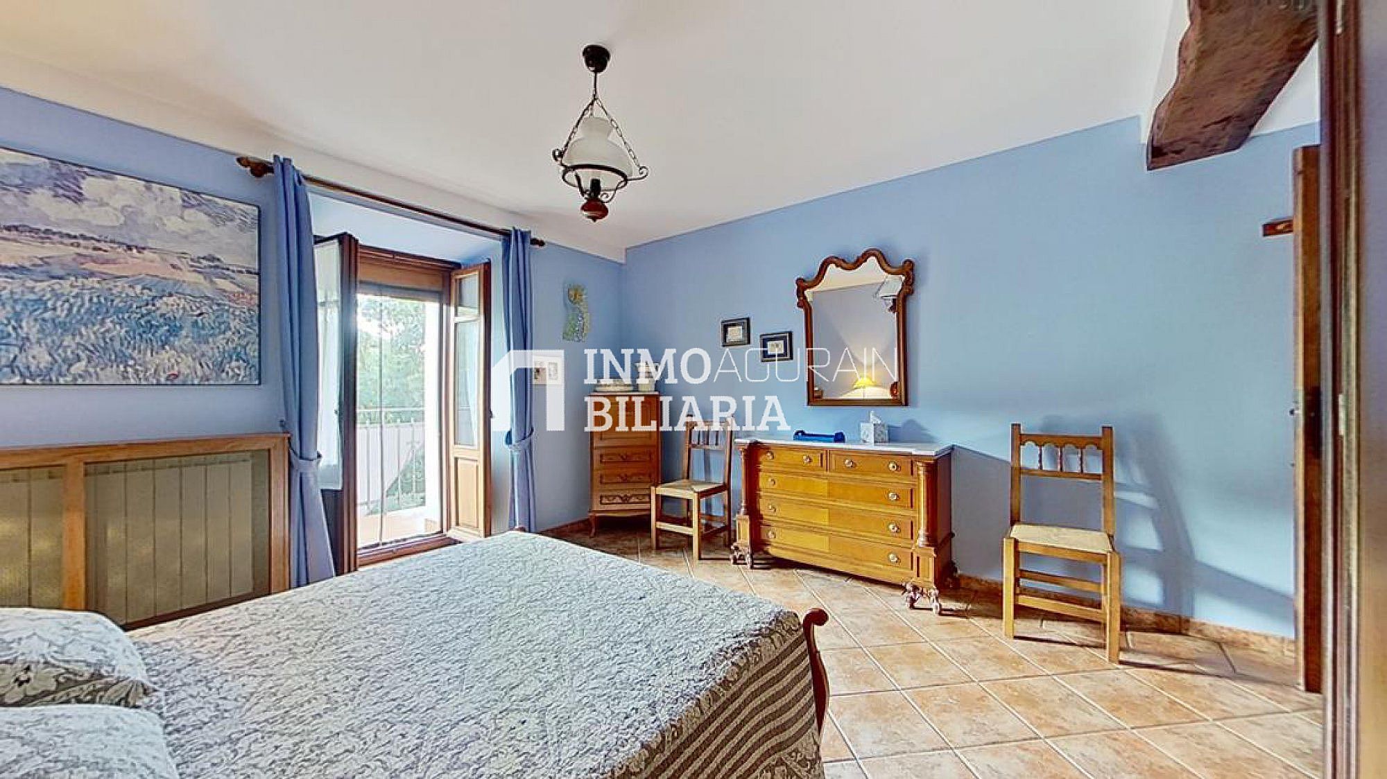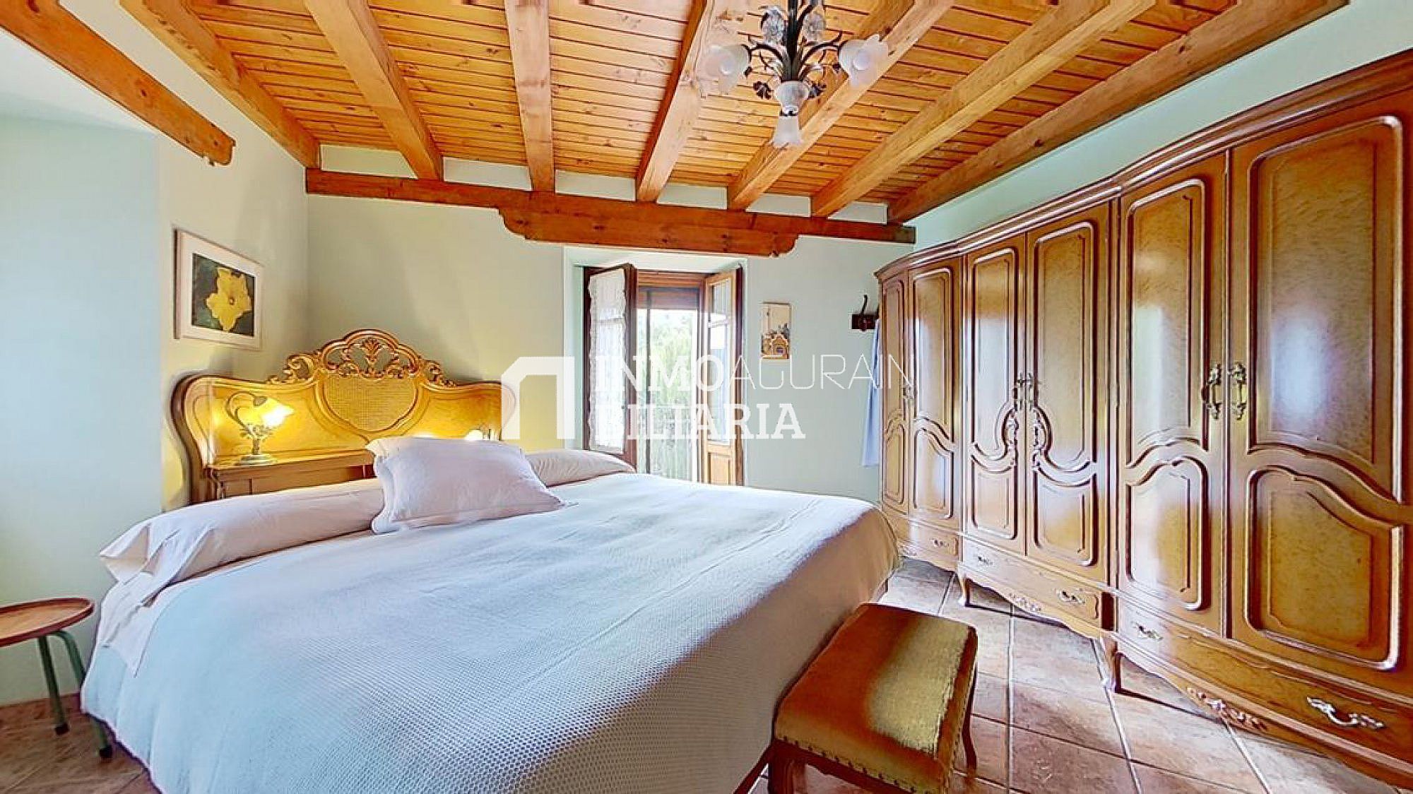 Esta hermosa casa llama la atención por su ubicación muy cercana a Pamplona, junto a la autopista, pero dentro de un bosque verde y fresco de Navarra. Es una auténtica casa de la zona, donde se ha preservado su exterior con una impetuosa fachada y conservado la esencia del interior: suelos y vigas de madera y fuego bajo, pero dándole a su vez a la propiedad las ventajas de un muy buen aislamiento de ventanas y una muy eficiente calefacción. Con una gran terraza al terreno y a la arboleda, con varios balcones, se ha buscado la luz y la claridad lo que le dá una elegancia única y exclusiva.